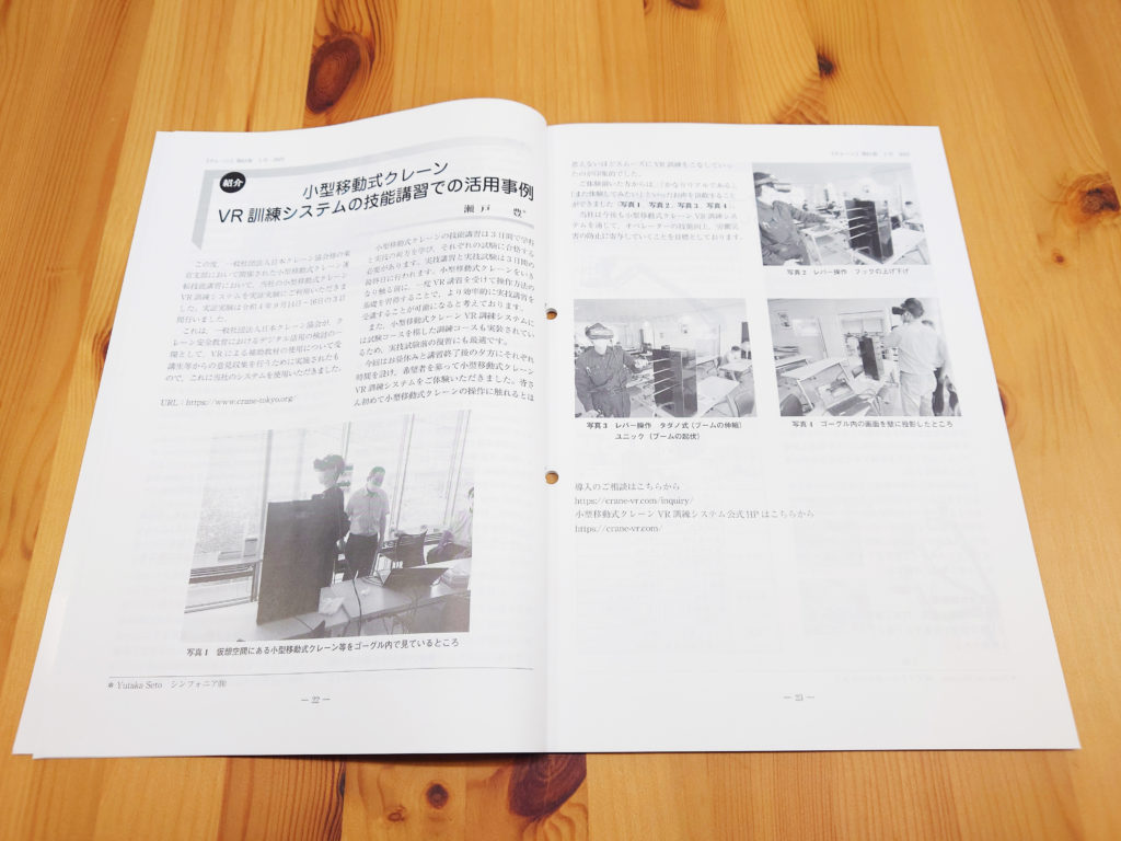 当社の「小型移動式クレーンVR訓練システム」を、日本クレーン協会東京支部様で開催された技能講習でご活用いただいた事例のレポートが掲載されております。