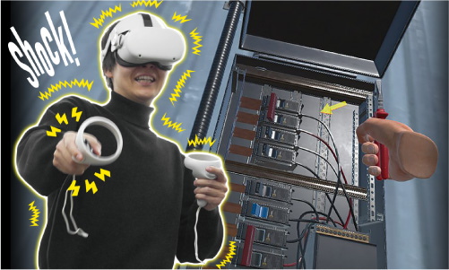 映像や操作に同期した感電刺激により、知識だけでは伝わらない緊張感を安全に再現。